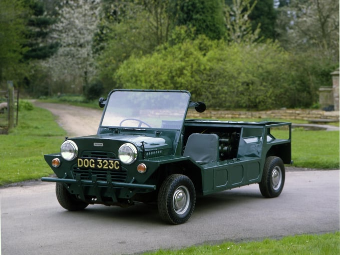 To explore the cross-country potential of the Moke, a twin engine version with four-wheel drive was built in 1962 using two Mini front subframes complete with engines, one at each end of the vehicle.