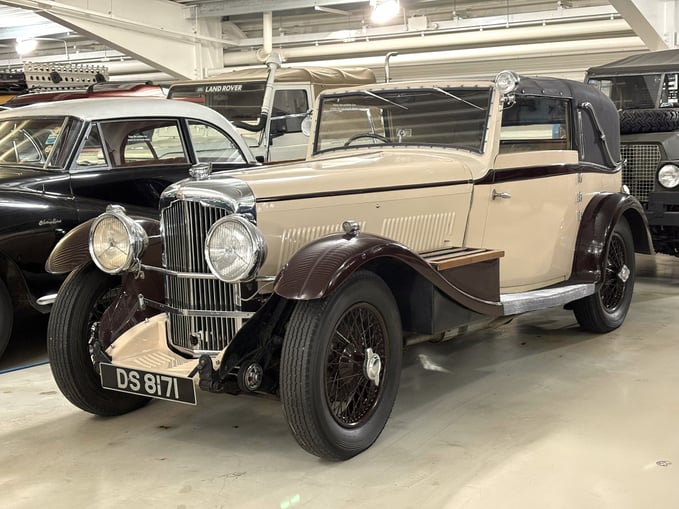 The car on display is not standard, having a tuned engine with three SU carburettors. It’s also one of only two fitted with the 'Sedanca coupé' body built by the London firm Corsica Coachworks. The term 'Sedanca' indicates that the front portion of the roof folds back, whilst the rear part is fixed.